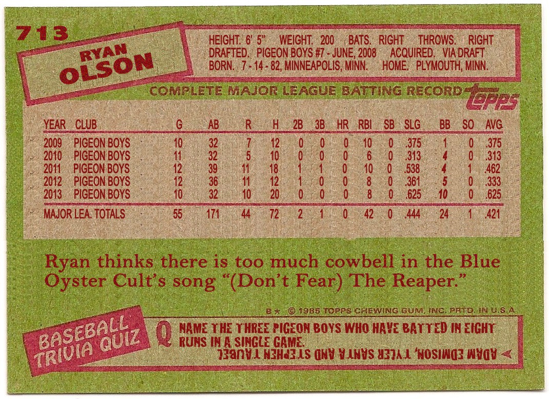 1985 Topps Olson Back